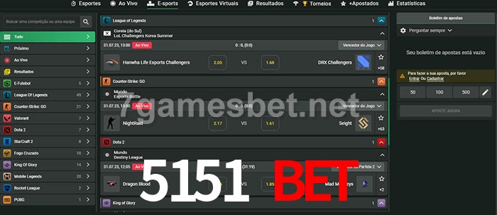 O 5151 Bet oferece uma grande seleção de opções de apostas em e-sports com probabilidades competitivas